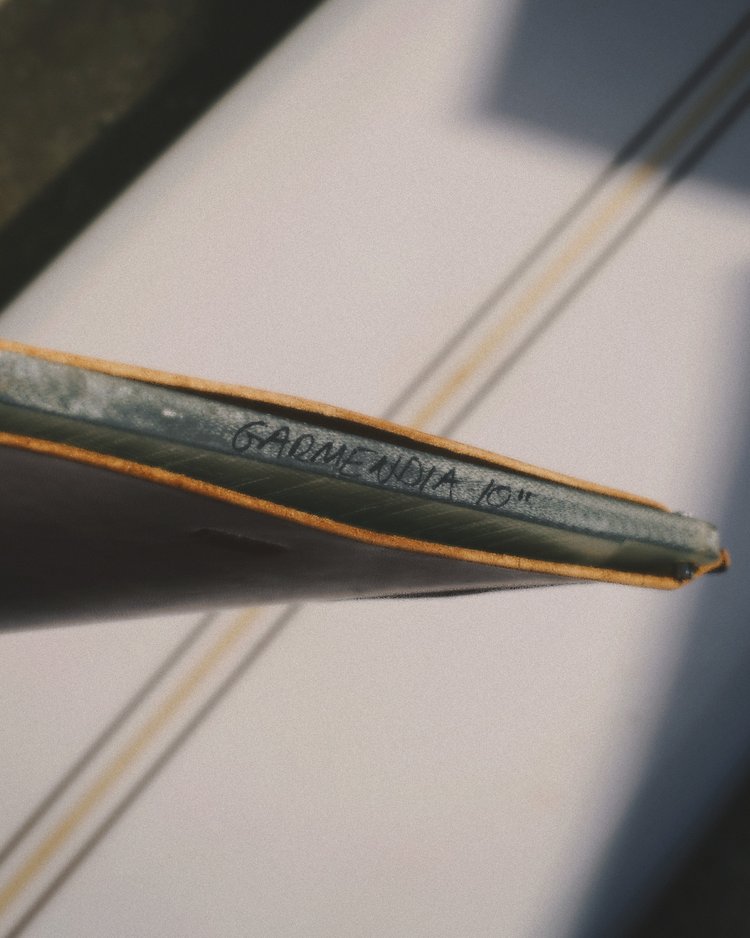 On the other hand, we discovered Mazzola accessories and appreciated so much their quality and special care in the details. We went to Lorena’s studio in the south of Tenerife, the Canary Islands, where she designs and crafts also by hand every single item. But not only she is a wonderful artisan, she is also a great longboarder. Now guess: what fin does she ride? The special edition Macho Fins x Garmendia. Size 10’. One last detail: Macho Fins -run by The Macho Brothers in Cantabria, northern Spain- uses top quality fibreglass, resin and dyes, and each and every fin is made by hand to the highest standard.